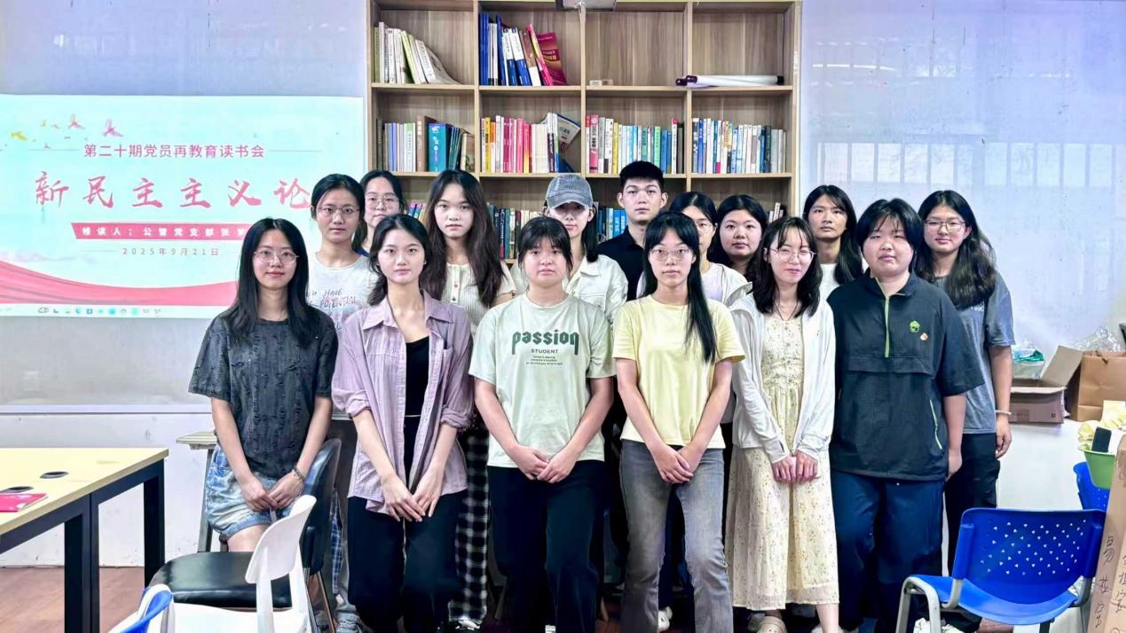 2025年9月21日下午,公共管理学院在启林北文创园开展第二十期党员再教育读书会。本次读书会旨在深入学习党的理论创新历程,深刻把握新民主主义革命的历史意义和当代启示,进一步增强党性修养,强化理论武装。公共管理学院各学生党支部的党员代表参加本次读书会。