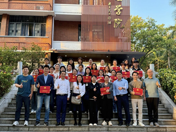 仪式结束后,全体师生与嘉宾于学院门口合影留念。本次表彰仪式既是对优秀师生的充分肯定,也是深化校企合作、推动学风建设的重要举措。未来,学院将持续发挥榜样引领作用,激励广大学生勤学笃行,培养更多可堪大用的新时代人才。