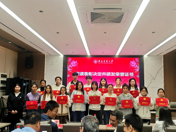 辅导员朱浩权宣读表彰决定,对获奖师生表示祝贺,并希望全体受奖同学戒骄戒躁、锐意进取。
