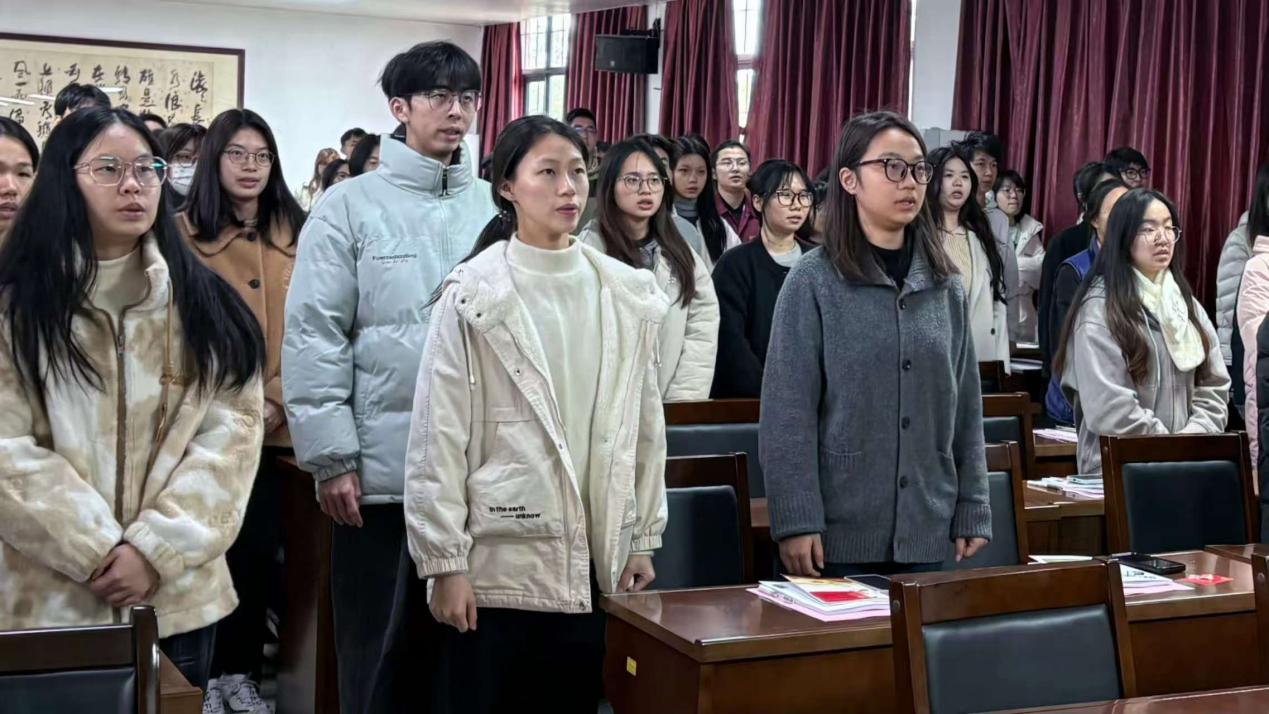 2025年12月26日12:30,公共管理学院在院楼402会议室隆重举行预备党员宣誓仪式。学院党委组织员周毅老师和85名新发展的预备党员同志参加本次宣誓仪式。