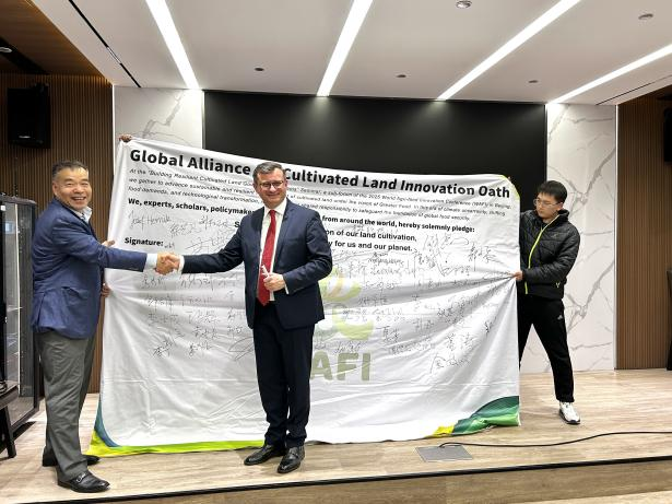 孔祥斌向Józef Hernik介绍了我院牵头建设的“耕地韧性治理全球联盟”。该联盟致力于汇聚全球智慧,围绕耕地保护、粮食系统韧性等议题开展跨国界、跨学科合作。双方就未来合作方向深入交流,Józef Hernik对联盟推动跨学科创新与合作的目标表示赞赏,欣然为联盟签名寄语,表达了对深化实质性合作的支持。