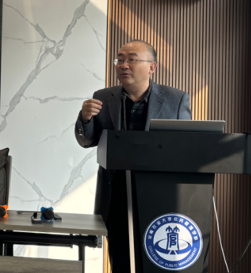 华南理工大学公共管理学院张树旺教授的报告主题是《跨界任务共同体:乡村振兴中开发式驻村帮扶工作队运行机制研究》,他从实践问题张力、文献综述、分享框架、质性材料、研究发言和理论对话六个方面进行分享,重点阐释了从“如何管控代理”转向“如何组织跨界协作完成发展任务”,提出用“跨界任务共同体”重新界定驻村工作队的组织功能,将开发式帮扶的有效性压缩为可追踪的机制链条,为“能力建设”与“韧性绩效”提供更具操作性的生成逻辑。