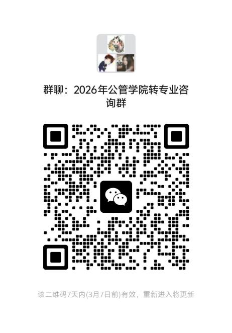 学生报名成功后请在3月4日中午12:00前加入2026年公共管理学院转专业(转入)咨询群(扫下方二维码入群)。转专业(一志愿和二志愿)面试时间地点及具体安排将在群内另行通知。