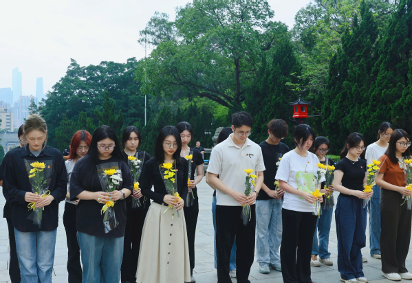 在黄花岗七十二烈士墓前,全体师生整齐列队,怀着崇敬的心情集体默哀,在静默中追忆革命先烈为民族独立和人民解放事业英勇献身的感人事迹,表达对英雄的无限哀思。在这一过程中,同学们深切领悟到了革命先辈们的理想信念,增强了历史使命感和时代责任感。